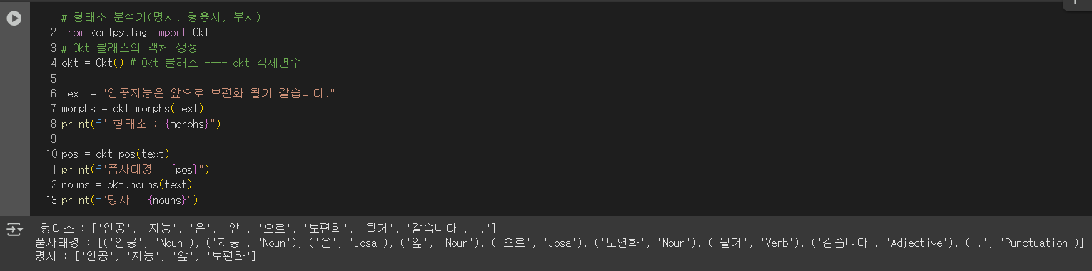 1. 형태소 분석기 (konply 라이브러리 사용)