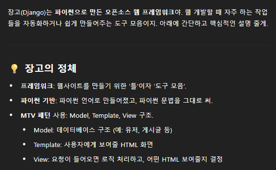 django는 장고라고 불리며 파이썬에서 웹사이트를 만드는 프레임워크중 하나입니다.